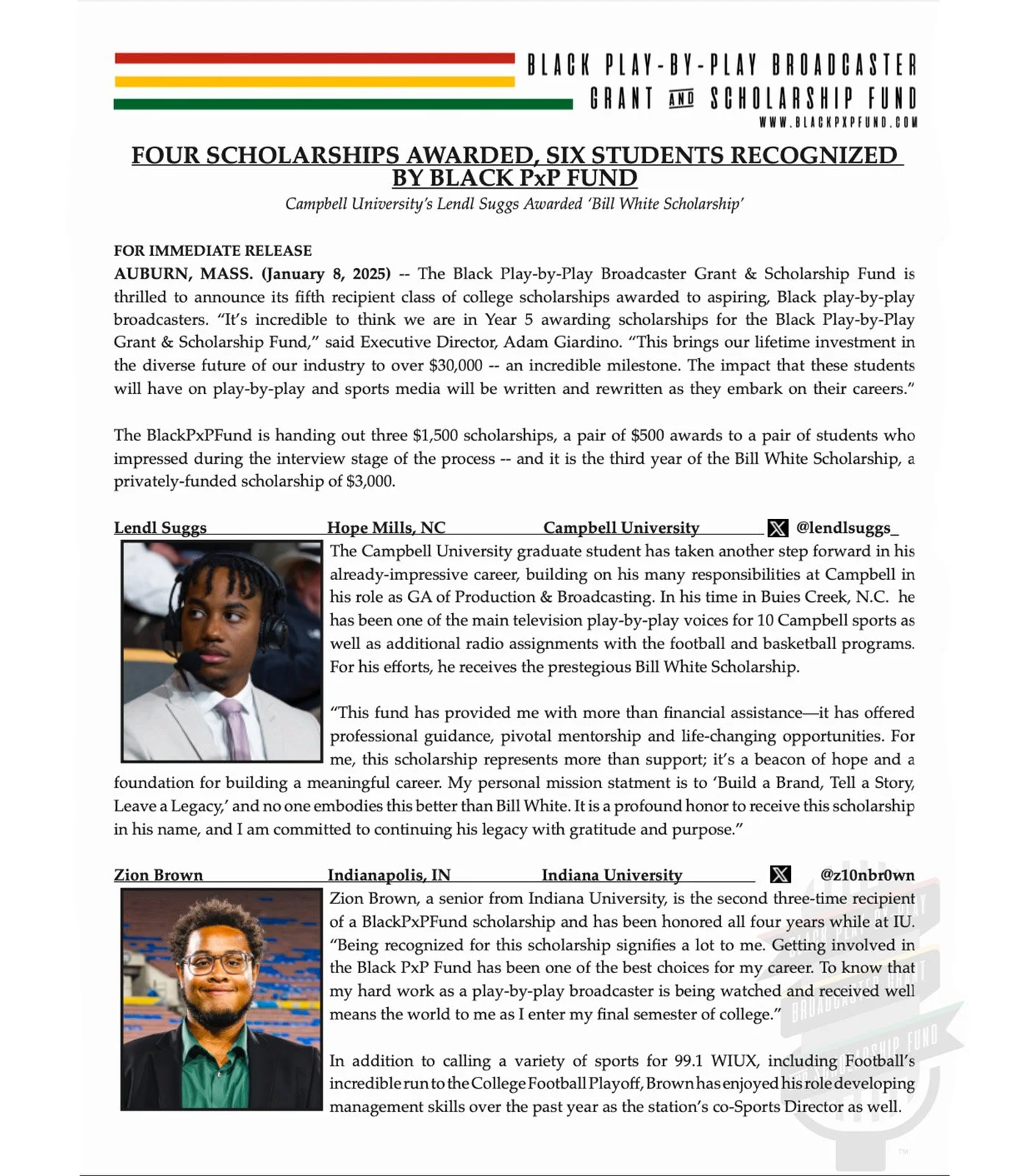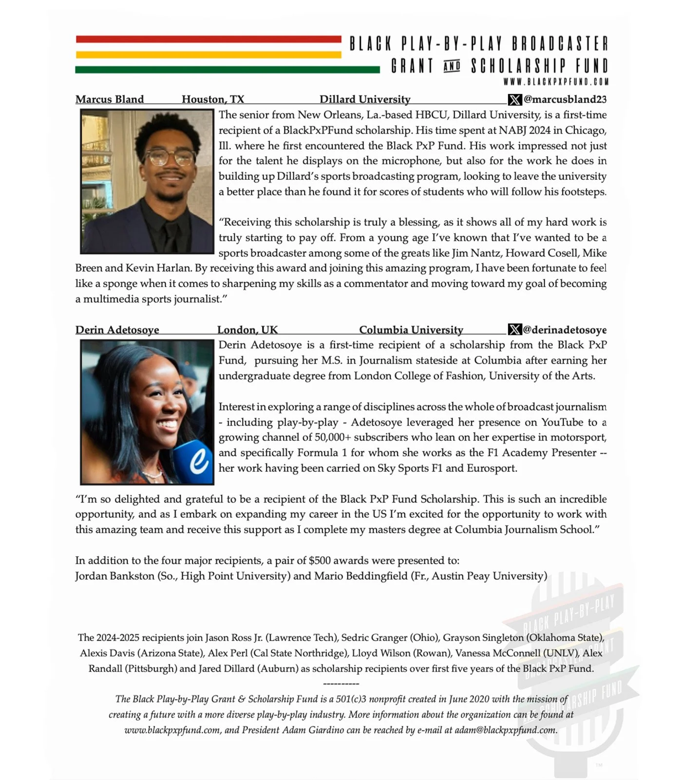 The 2025-2026 scholarship application process has begun! Please reach out to Adam Giardino at Adam [@] blackpxpfund.com to introduce yourself to be included in the next wave of scholarship applicants.